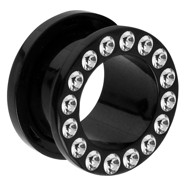 The Black Multi Jewelled Tunnel from our Acrylic Line are made of feather light acrylic. This Flesh Tunnel has an externally threaded rear disc and is available in a number of sizes and different colours!