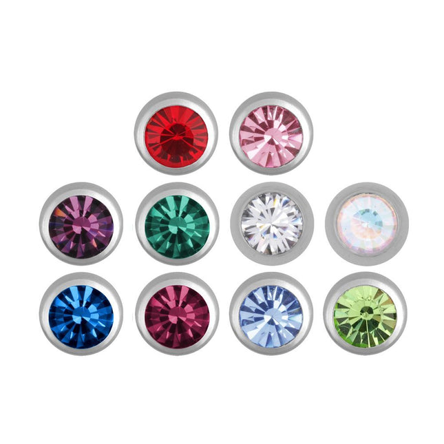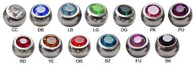 The Steel Basicline Screw On Jewelled Ball is made from premium quality surgical stainless steel and is compatible with 1.6mm (14ga) external threads. Available in 4, 5, 6 and 8mm diameters and 14 different colours!