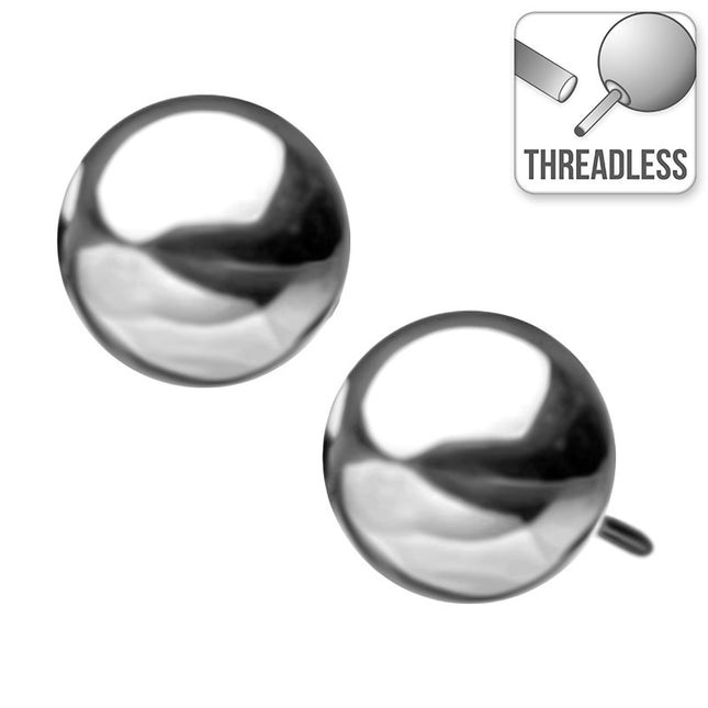 Invictus Threadless Titanium Ball Attachment.This threadless titanium ball attachment comes in a 3mm, 4mm and 5mm ball size and fits into any Invictus Titanium Threadless Stem. The classic titanium top ball is available in a threadless style for the perfect look - simple and stylish - and one that will never go out of fashion.Manufactured from TI6AL4V ELI ASTM F-136 Titanium with a mirror finish polish.To fix an attachment to a threadless stem, add a slight bend to the pin by simply inserting the pin half way and gently pushing the attachment to one side. Then push the pin fully inside the stem until the attachment fits securely. To tighten the fit, simply increase the bend of the pin. Start small, and don't bend the pin too far as you risk damaging the attachment.Continuing with our commitment to provide high quality body piercing products, we are proud to introduce our newest line, Invictus Threadless Body Jewellery.The line is made from implant grade titanium TI-6AL-4V ELI ASTM F136 and finished to a bright polish. It consists of barbells, curves, labret bases, balls and genuine Swarovski gem tops which are all completely interchangeable to create a full array of configurations while having to keep less inventory.The thin 25ga pins on our tops allows us to create jewellery starting from 20ga and tops as small as 1.5mm for piercings needing smaller sizes. A range of 14ct Gold tops are also available, with even more styles on offer through custom order.