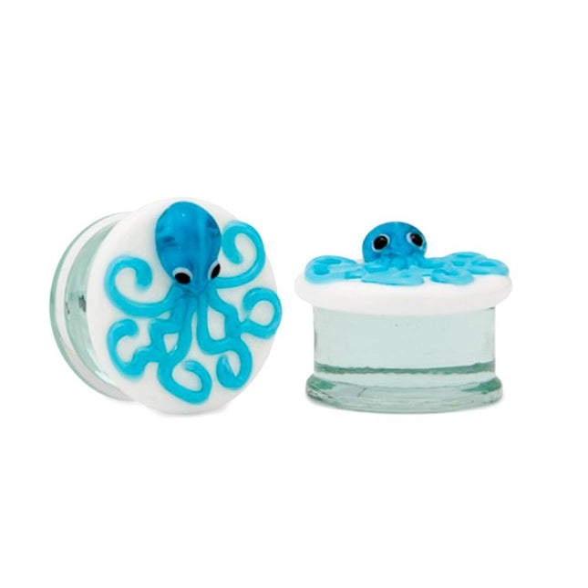 These beautiful glass double flared plugs are expertly crafted from soda lime glass, and finished with a blue honey comb imprint on the front surface. Avalible from 6mm to 30mm.