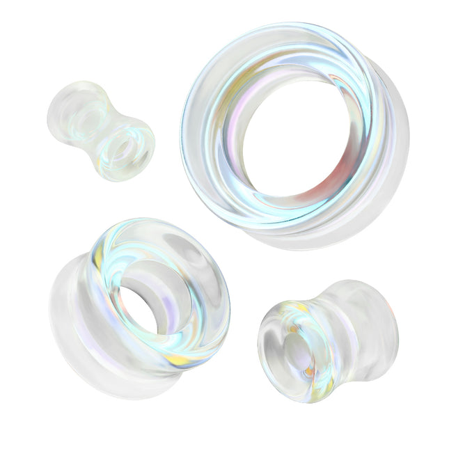These classic clear glass spirals have an iridescent finish for a twist! Hand crafted, small variations are to be expected. Avalible from 3mm up to 16mm