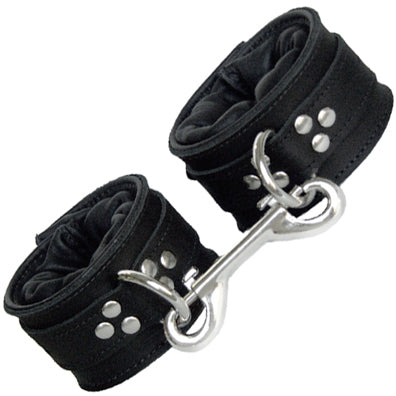 Padded geniune Leather Restraints in BLACK. Adjustable via buckle holes between 18cm and 31cm approx. The width of the pad is 7 X 25cm. Contains 1 well secured steel buckel for attachment to ropes or other items. Excellent for restraining your submissive. For personal entertainment only. Do not use without consent of the submissive. Do not leave the submissive unattended at anytime whilst wearing the restraints.