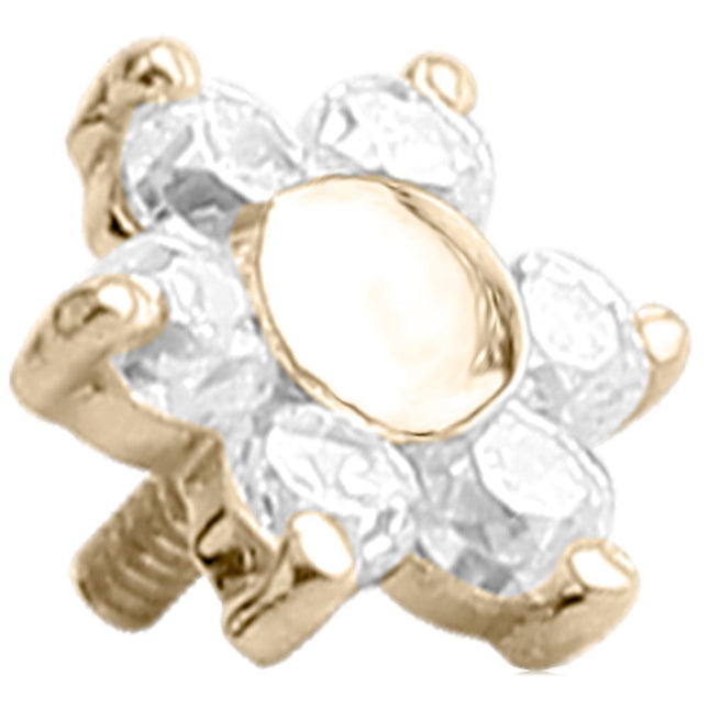 18ct Yellow Gold Internally Threaded Prong Set Jewelled Flower Thread : For Internally Threaded Jewellery with a 1.6mm (14ga) Stem Thickness Top Size : 5mm