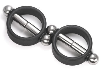Black Magnetic Nipple Pinchers- (PAIRS) Magnet Strength Powerful - Ring made from hard shiny plastic. The ends of the magnets have a 10mm ball attached to them -The rod is 6mm thick, and 17mm long - Inner diameter of the Ring is 26mm and is 9mm tall and 3mm thick.