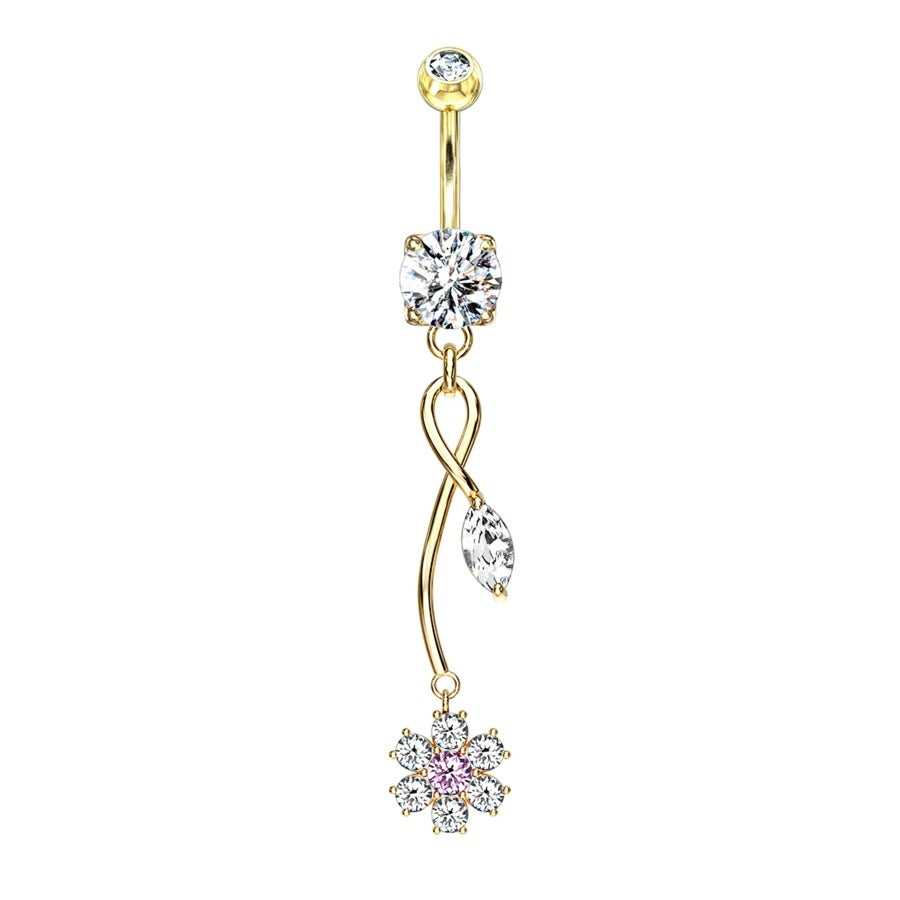 Flower Jewelled Vine Dangle Plated Fashion Navel In Silver or Gold