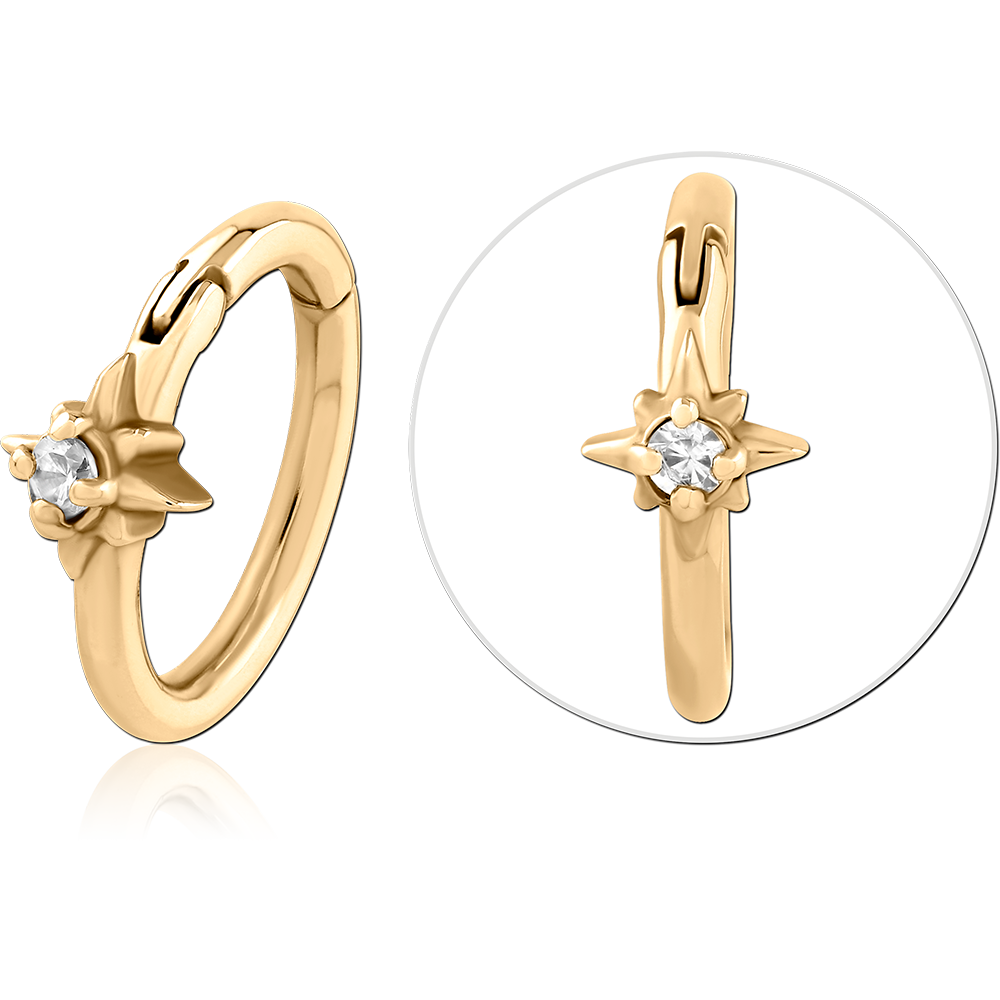 Gold Plated Surgical Steel Clicker with Star and Clear Gem