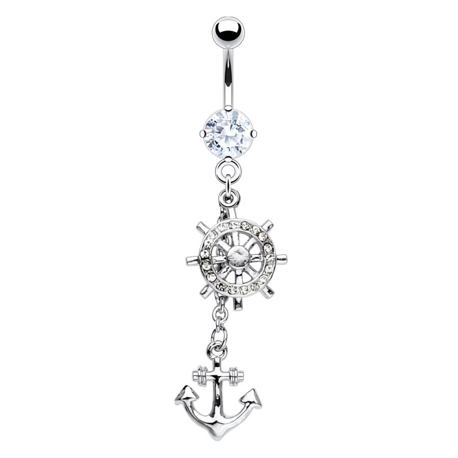 Hanging Anchor and Ship Wheel Jewelled Daniel Plated Fashion Navel