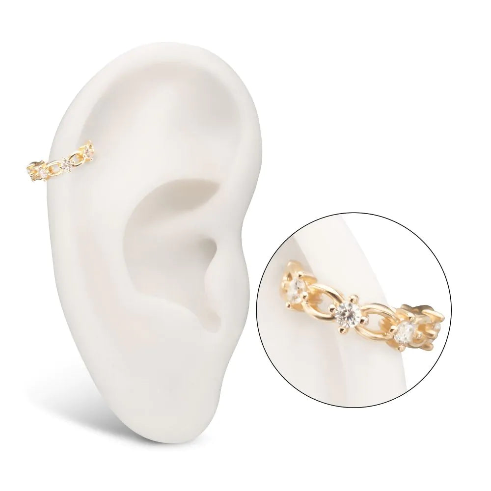 Invictus 14Kt Gold Braided Design Side Facing Hinged Segment Clicker with Prong Set Gem