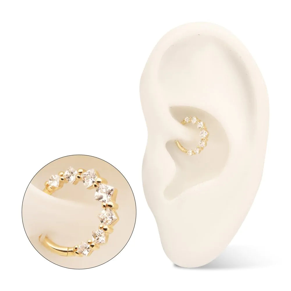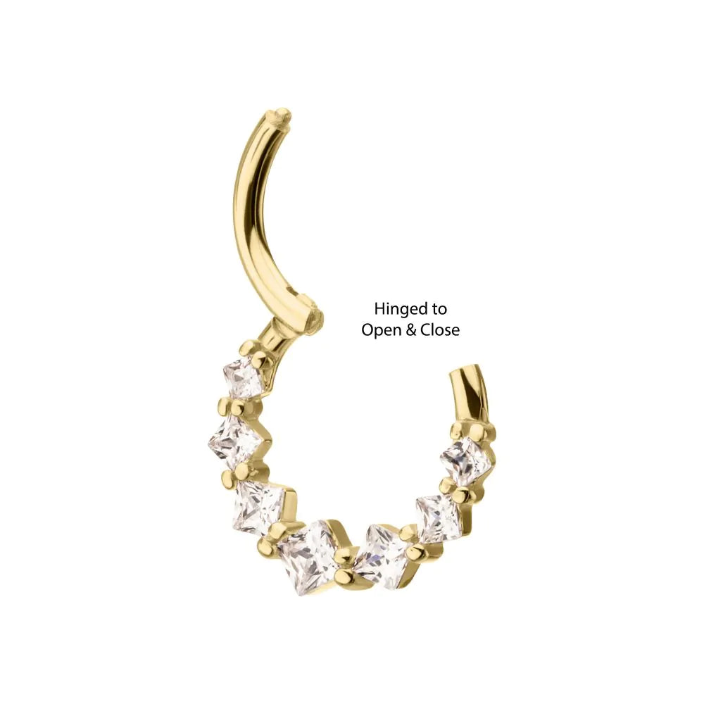 Invictus 14Kt Yellow Gold Prong Set Princess Gem Cluster Front Facing Hinged Segment Clicker