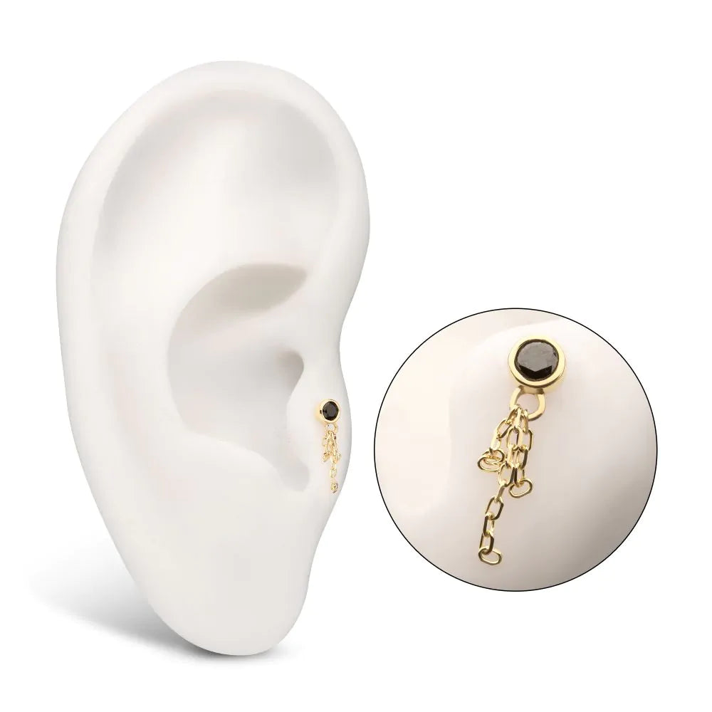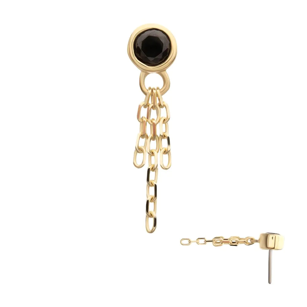 Invictus 14Kt Yellow Gold Threadless Bezel Set Gem Top with Triple Chain Dangle