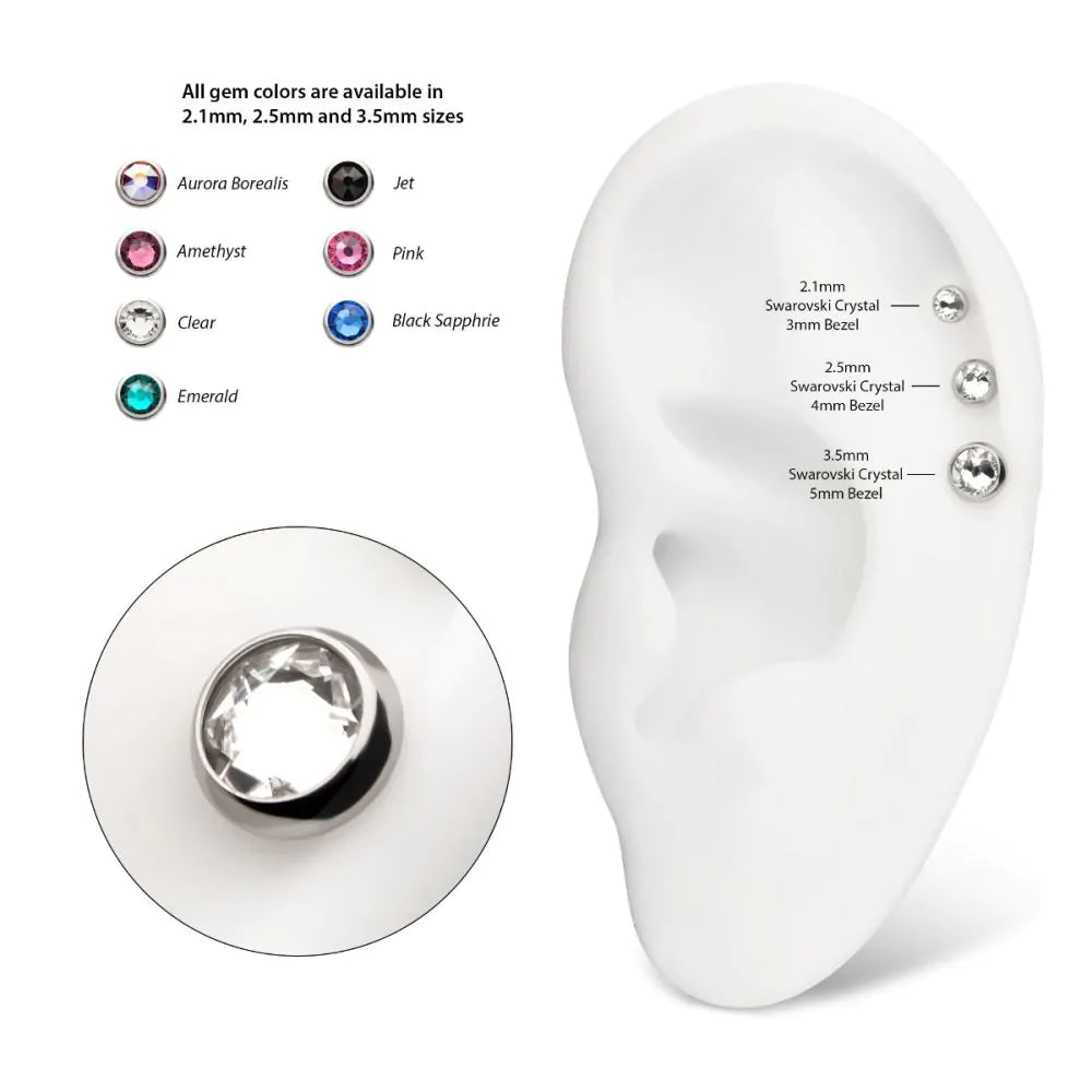Invictus 16g Titanium Internally Threaded Low Profile Bezel Set Swarovski Crystal Dermal Top