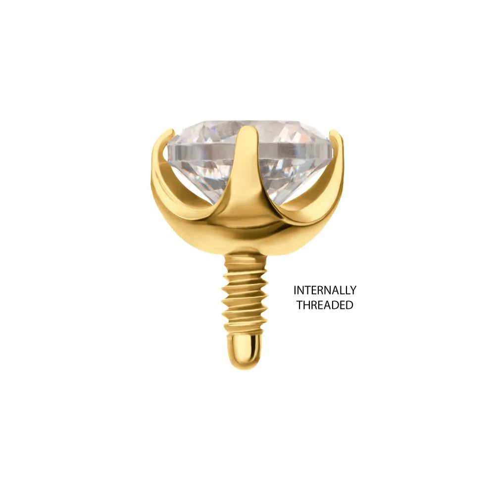 Invictus 24Kt Gold PVD Titanium Internally Threaded Flat Base Low Profile 4 Prong Round Gem Top