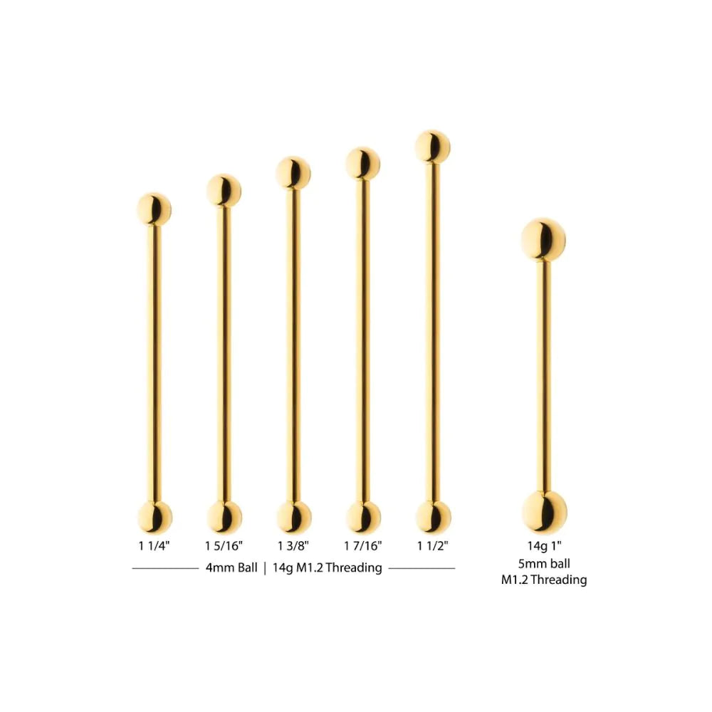 Homepage Invictus 24KT Gold PVD Titanium Internally Threaded Industrial Barbell Back Product formSKU: TIP24KBI6901 Barcode: 50866 Invictus 24KT Gold PVD Titanium Internally Threaded Industrial Barbell $10.66 6 in stock Gauge Free pickup in our shop(s) 1.2mm (16g) / 32mm / 3mm 1.2mm (16g) / 33mm / 3mm 1.2mm (16g) / 34mm / 3mm 1.2mm (16g) / 32mm / 4mm 1.2mm (16g) / 33mm / 4mm 1.2mm (16g) / 34mm / 4mm 1.6mm (14g) / 32mm / 4mm 1.6mm (14g) / 33mm / 4mm 1.6mm (14g) / 34mm / 4mm 1.6mm (14g) / 37mm / 4mm 1.6mm (14g) / 38mm / 4mm 1.6mm (14g) / 25mm / 5mm Free pickup in our shop(s) Gauge Free pickup in our shop(s) 1.2mm (16g) 1.6mm (14g) Internal Diameter Free pickup in our shop(s) 32mm 33mm 34mm 37mm 38mm 25mm Ball Size Free pickup in our shop(s) 3mm 4mm 5mm Material: Gold PVD - TitaniumUnit: Single Quantity Add to cart This item is a recurring or deferred purchase. By continuing, I agree to the cancellation policy and authorize you to charge my payment method at the prices, frequency and dates listed on this page until my order is fulfilled or I cancel, if permitted.