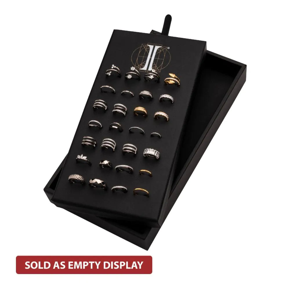 DISPLAY POLICY: Invictus designs and manufacturers displays specifically for the purpose of representing Invictus products to the final consumer. There is a minimum order required of jewelry to receive displays. In general, a display can be provided when enough jewelry is ordered for the display. Once a shop has received initial displays from Invictus, they can discuss additional display needs with us. Invictus displays are not intended for displaying other brands and Invictus reserves the right to not provide displays to customers for various reasons.