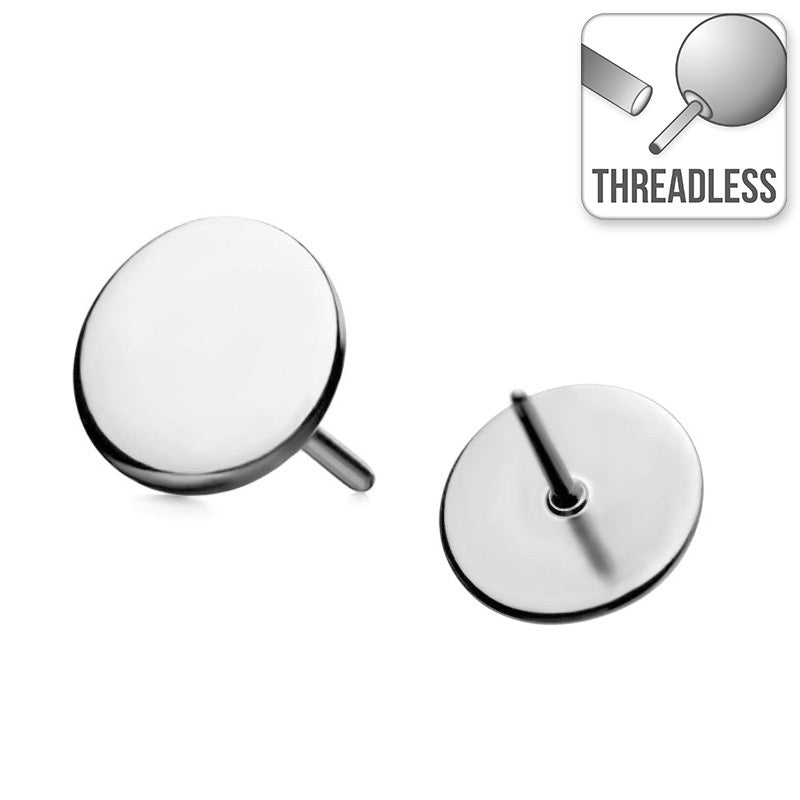This threadless titanium flat disc attachment comes in a 2mm, 2.5mm, 3mm, 4mm and 5mm diameter and fits into any Invictus Titanium Threadless Stem. Our threadless titanium flat discs have a minimalist look and come in a variety of sizes from 2mm to 5mm to suit any project or look.