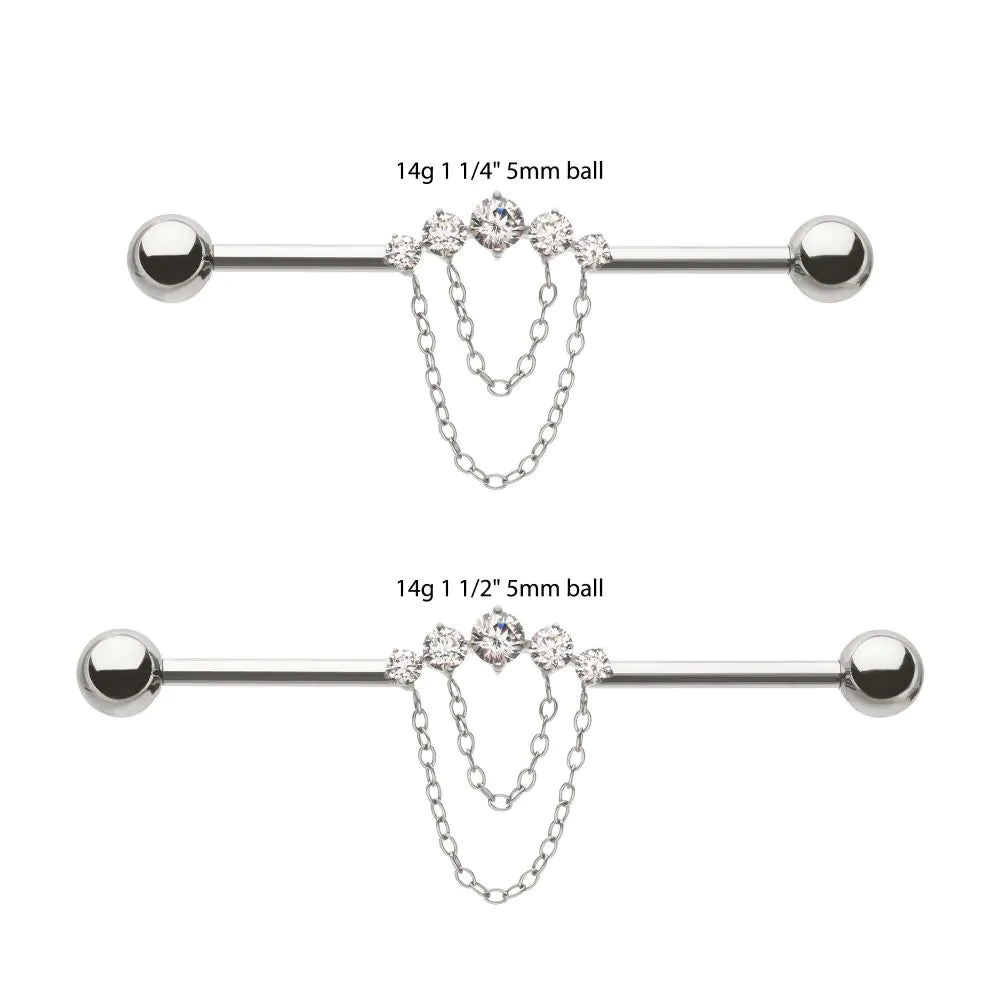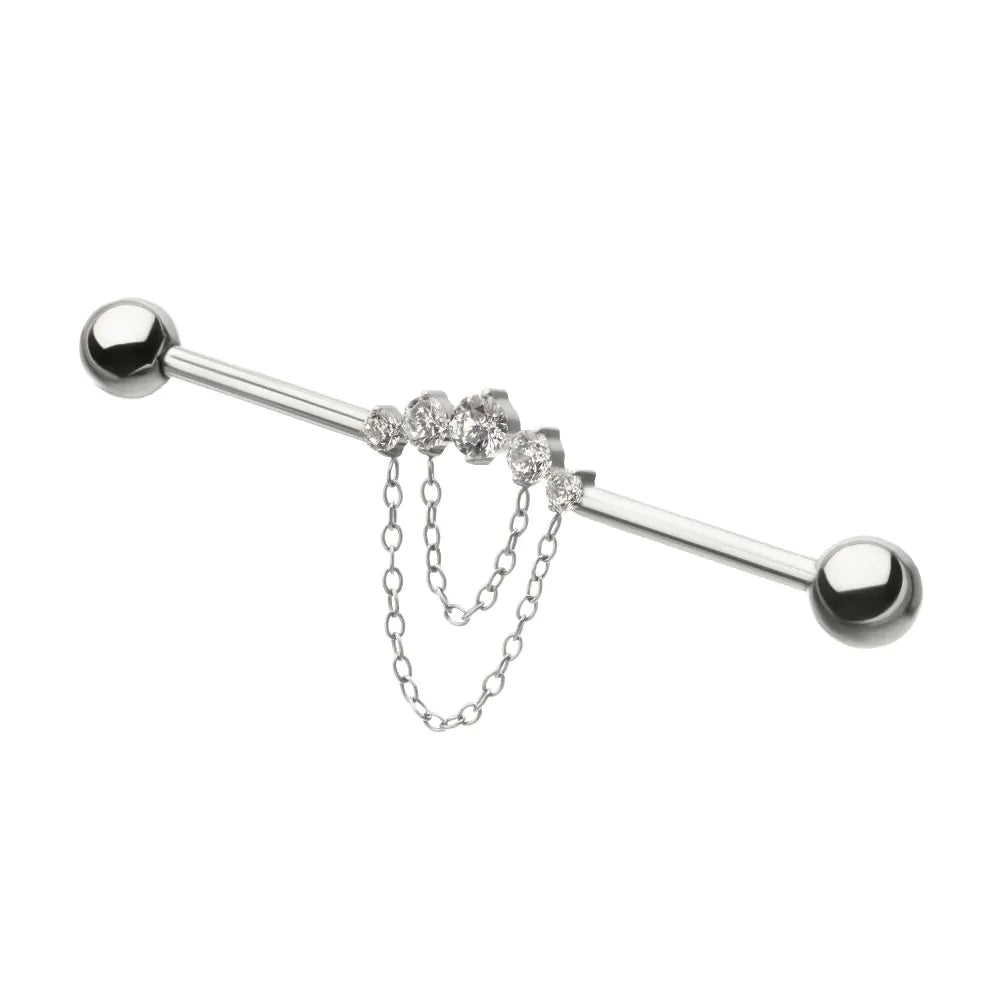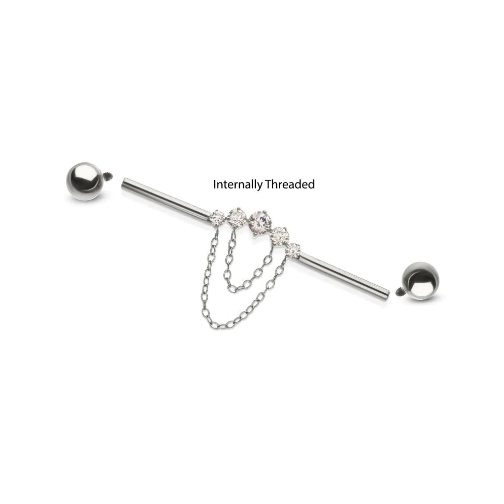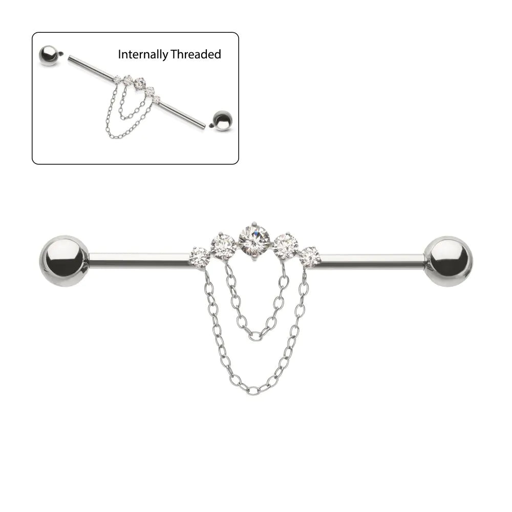 Invictus Titanium Internally Threaded 5 Round Prong Set Gem Cluster with 2-Tier Chain & Ball End Industrial Barbell
