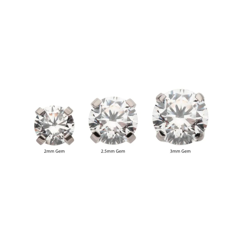 Invictus Titanium Internally Threaded Labret with Prong Set CZ Top & 2.5mm Base