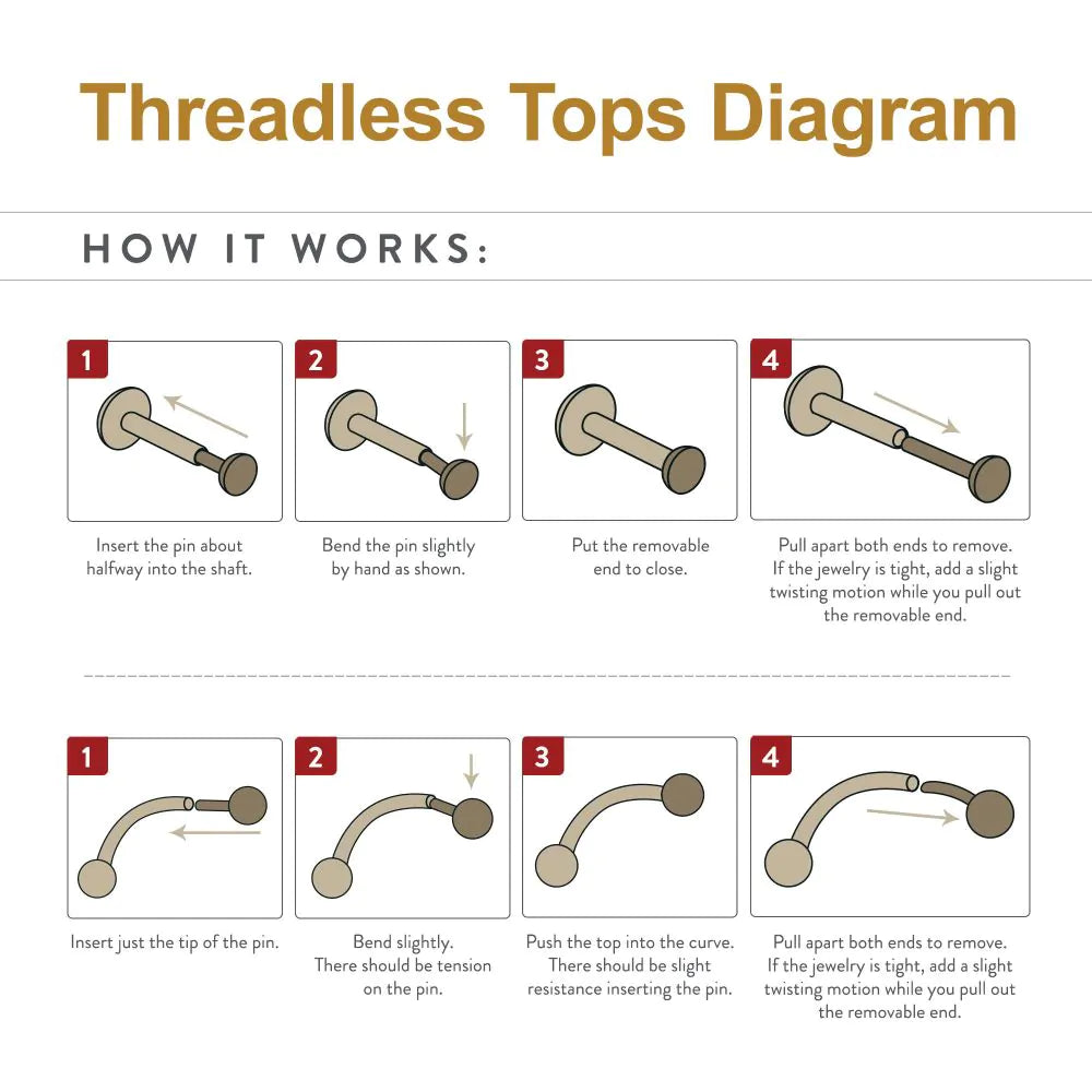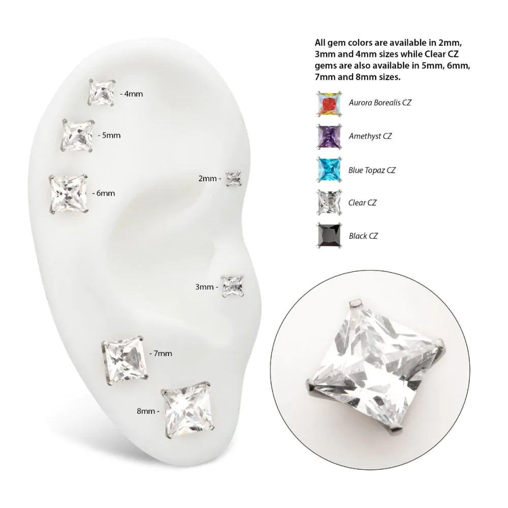 Invictus Titanium Threadless Flat Base Low Profile 4 Prong Princess Cut Gem Top