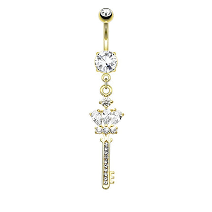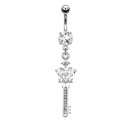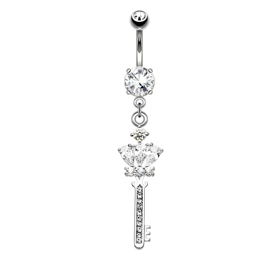 Ornate Key Micro Jewelled Dangle Plated Fashion Navel in Silver or Gold