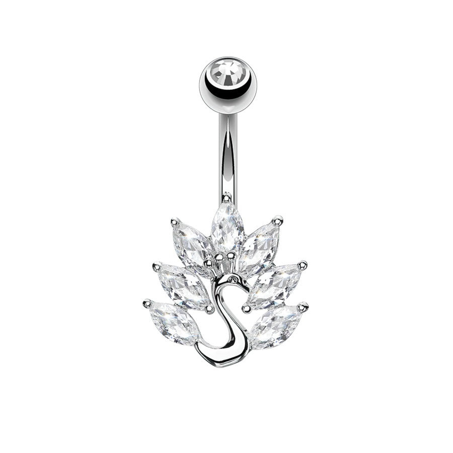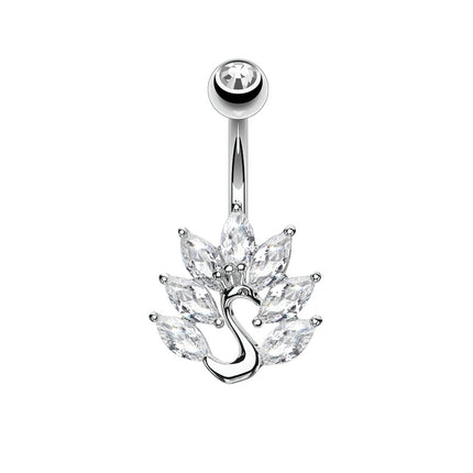 Peacock Marquise Jewelled Cluster Plated Fashion Navel in Silver or Gold