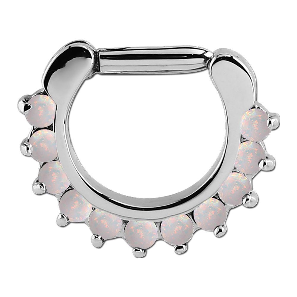 Homepage Synthetic Opal Septum Prong Set Jewelled Clicker Back Product formSKU: EJSM09.012.060.WH Barcode: 353 Synthetic Opal Septum Prong Set Jewelled Clicker $21.70 19 in stock Thickness Free pickup in our shop(s) 1.2mm (16ga) / 6mm 1.2mm (16ga) / 8mm 1.6mm (14ga) / 8mm Free pickup in our shop(s) Thickness Free pickup in our shop(s) 1.2mm (16ga) 1.6mm (14ga) Internal Diameter Free pickup in our shop(s) 6mm 8mm Material: Surgical Stainless Steel 316LUnit: Single Quantity Add to cart This item is a recurring or deferred purchase. By continuing, I agree to the cancellation policy and authorize you to charge my payment method at the prices, frequency and dates listed on this page until my order is fulfilled or I cancel, if permitted.