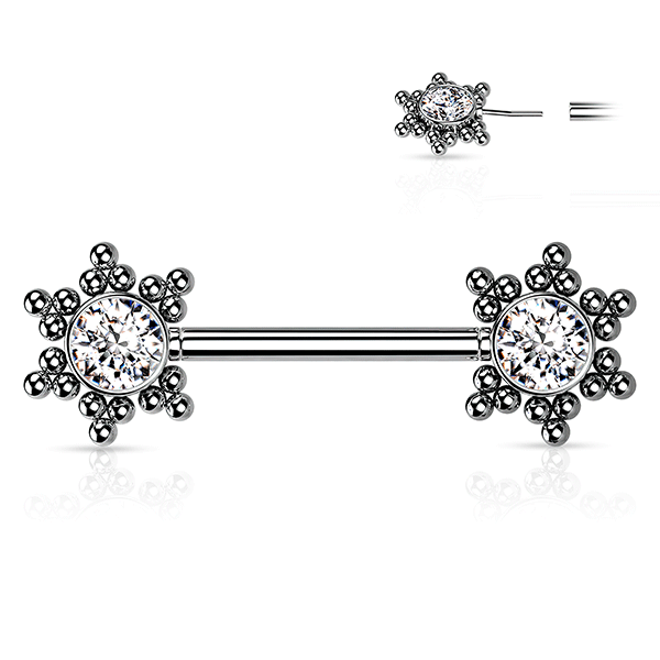 Threadless Beaded Star Jewelled Cluster Plated Decorative Nipple Barbell