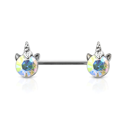 Unicorn Rainbow Silver Plated Decorative Fashion Nipple Barbell