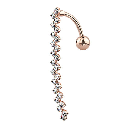 Zig Zag Vertical Drop Jewelled Dangle Plated Fashion Navel in Silver, Gold and Rose Gold
