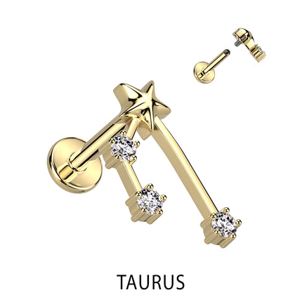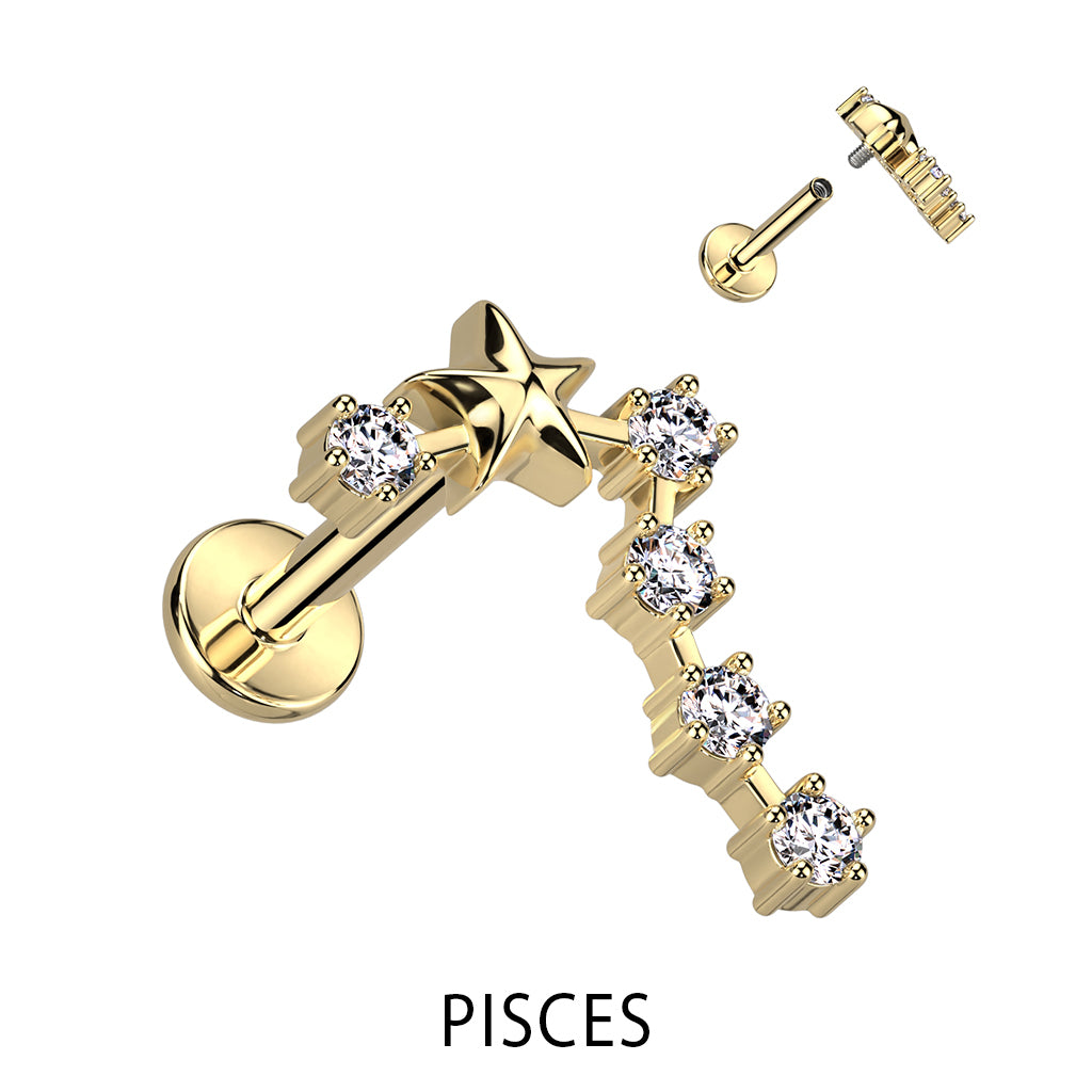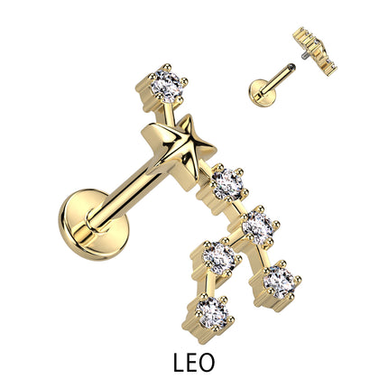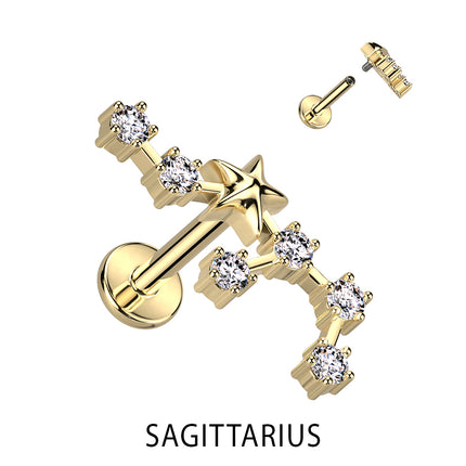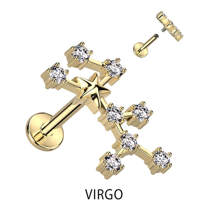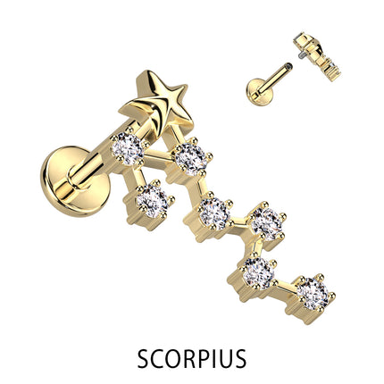 Zodiac Constellation Labret Stud Gold Plated With Clear Crystal